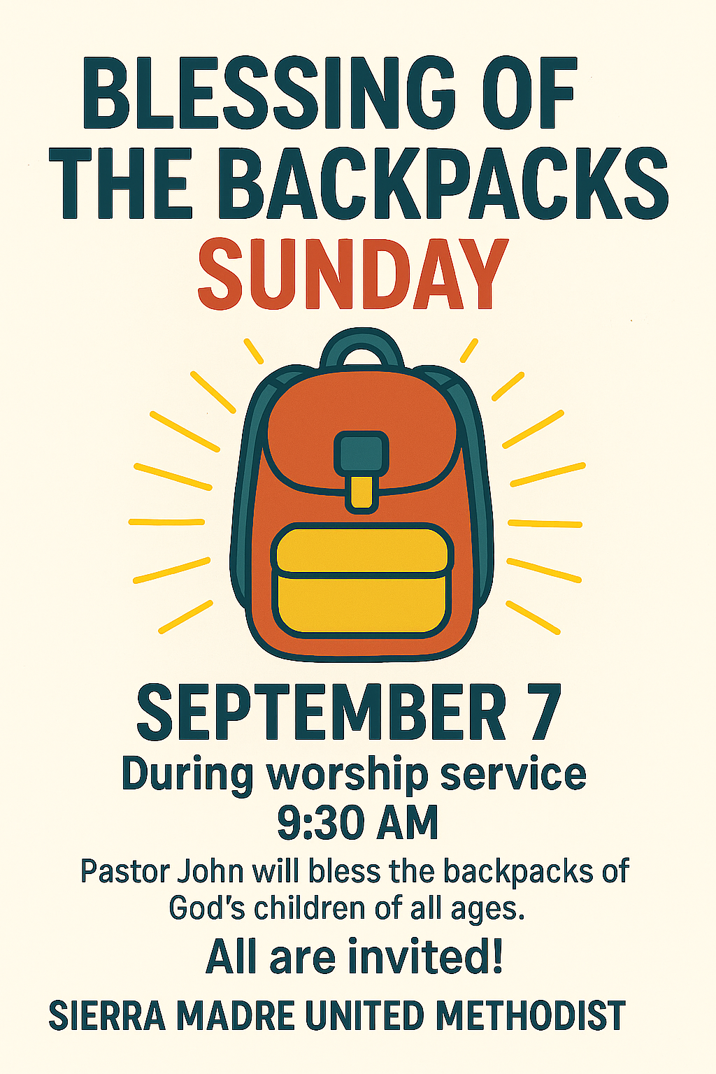Blessing of the Backpacks Announcement
